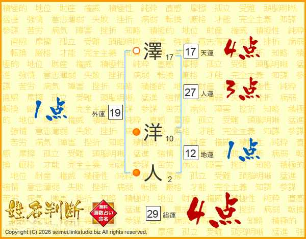 澤洋人さんの総運は29画の4点!