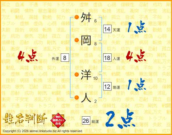 舛岡洋人さんの総運は26画の2点!