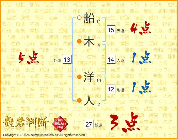 船木洋人さんの天運は15画の4点!
