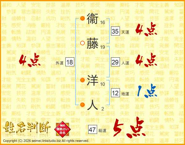 衞(16画)藤(19画) 洋(10画)人(2画)