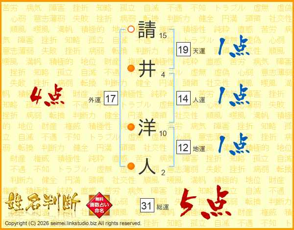 請井洋人さんの総運は31画の5点!