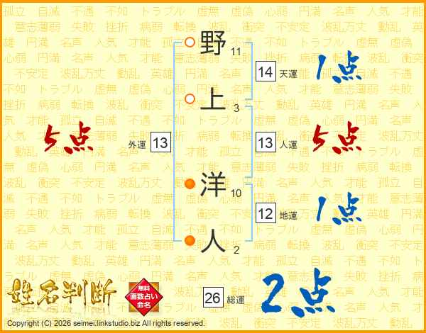 野上洋人さんの総運は26画の2点!