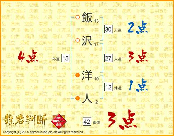 飯沢洋人さんの総運は42画の3点!