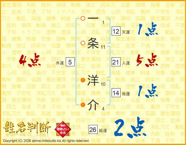 一条洋介さんの総運は26画の2点!