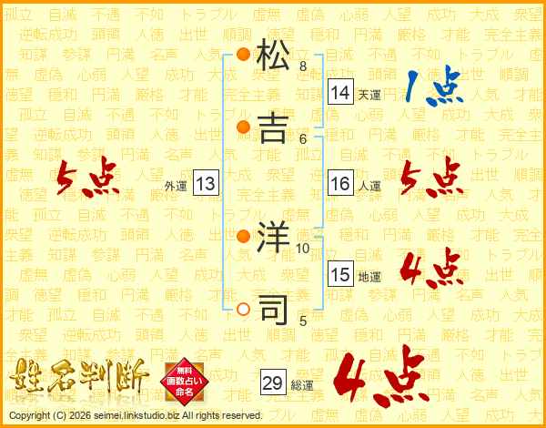 松吉洋司さんの総運は29画の4点!
