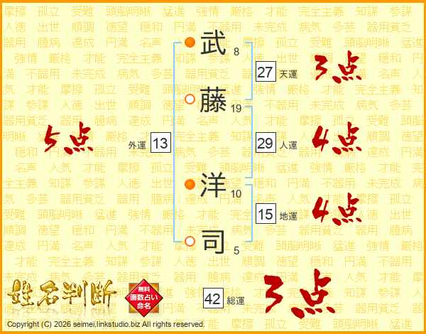 武(8画)藤(19画) 洋(10画)司(5画)