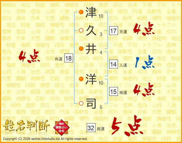 津久井洋司さんの天運は17画の4点!