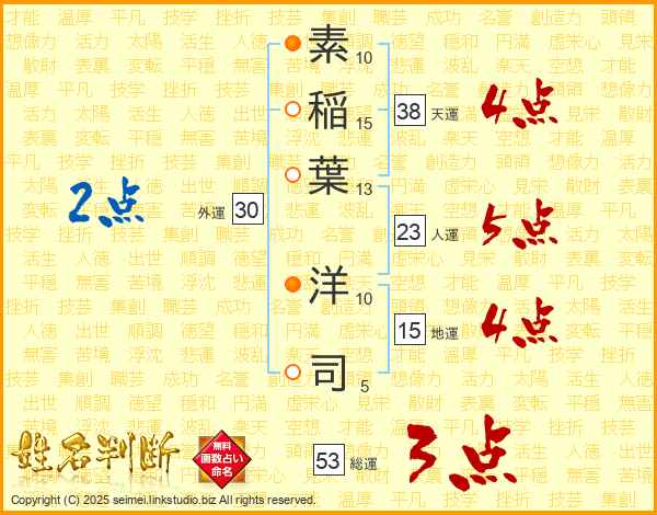 素稲葉洋司さんの総運は53画の3点!