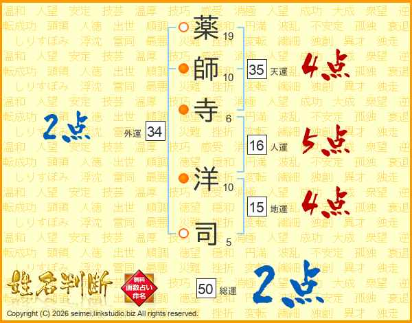 薬師寺洋司さんの天運は35画の4点!