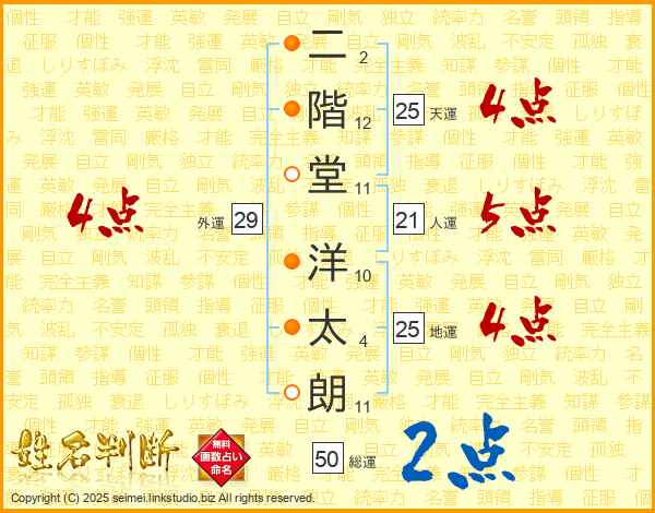 二階堂洋太朗さんの天運は25画の4点!