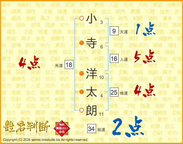 小寺洋太朗さんの総運は34画の2点!