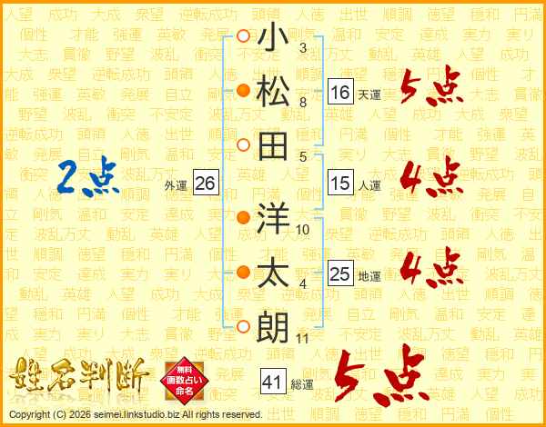 小松田洋太朗さんの総運は41画の5点!