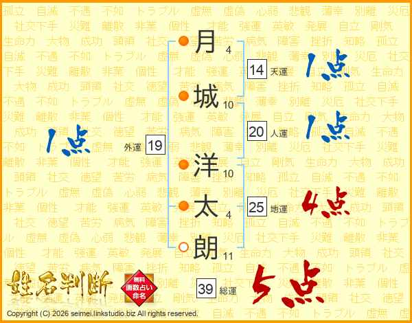 月城洋太朗さんの総運は39画の5点!