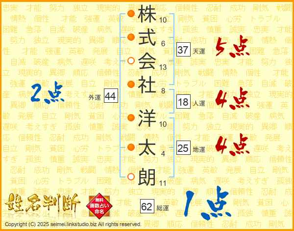 株式会社洋太朗さんの天運は37画の5点!