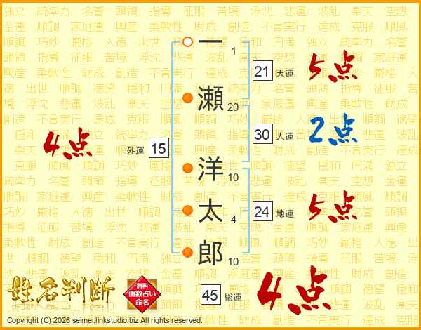 一(1画)瀬(20画) 洋(10画)太(4画)郎(10画)