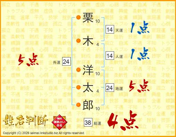 栗(10画)木(4画) 洋(10画)太(4画)郎(10画)