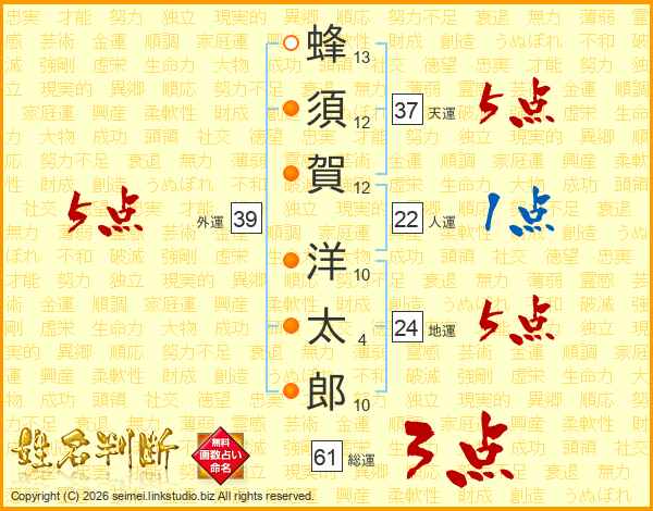 蜂須賀洋太郎さんの外運は39画の5点!
