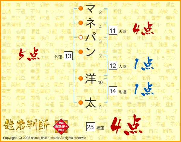 マ(2画)ネ(4画)パ(3画)ン(2画) 洋(10画)太(4画)