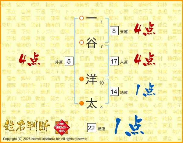 一谷洋太さんの地運は14画の1点!