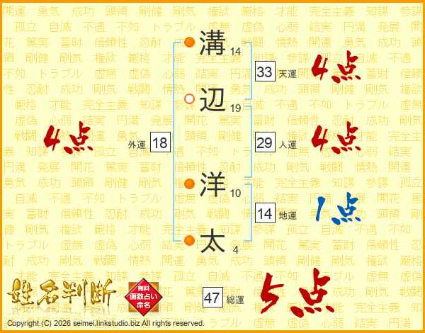 溝(14画)辺(19画) 洋(10画)太(4画)