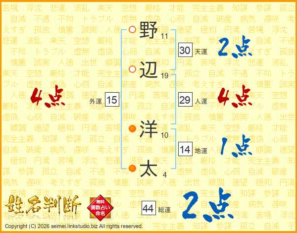 野辺洋太さんの天運は30画の2点!