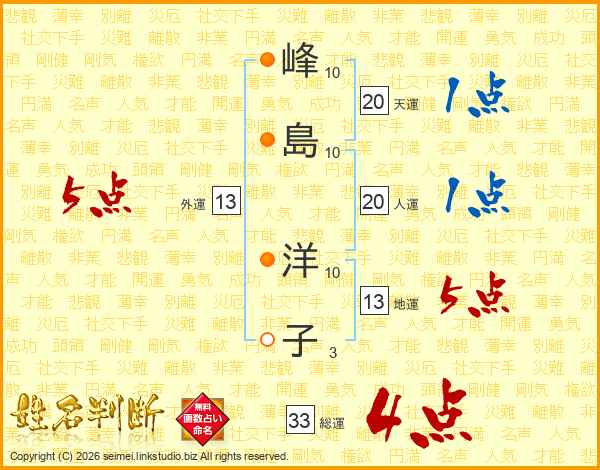 峰島洋子さんの総運は33画の4点!