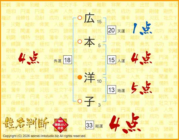 広本洋子さんの総運は33画の4点!