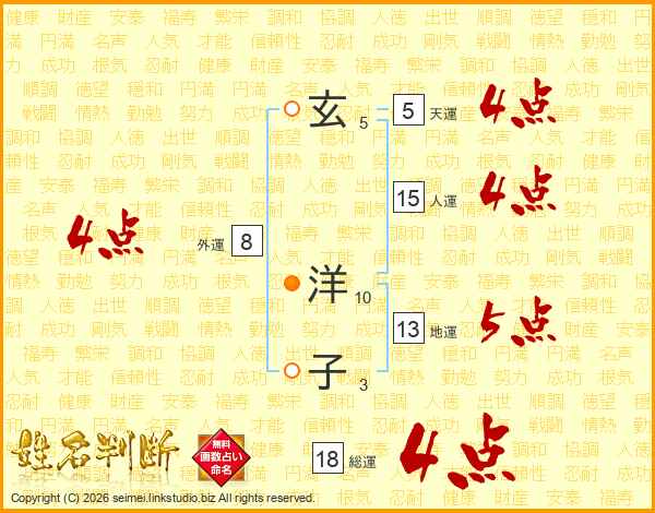 玄洋子さんの総運は18画の4点!
