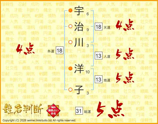 宇治川洋子さんの総運は31画の5点!