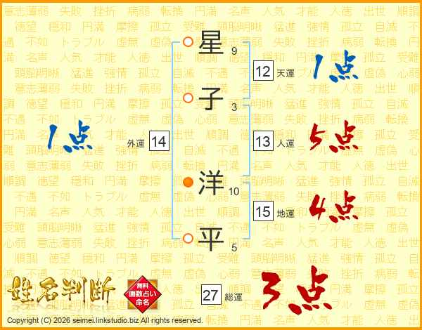 星子洋平さんの総運は27画の3点!