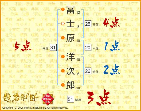冨(12画)士(3画)原(10画) 洋(10画)次(6画)郎(10画)