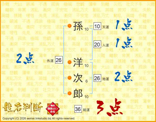 孫洋次郎さんの地運は26画の2点!