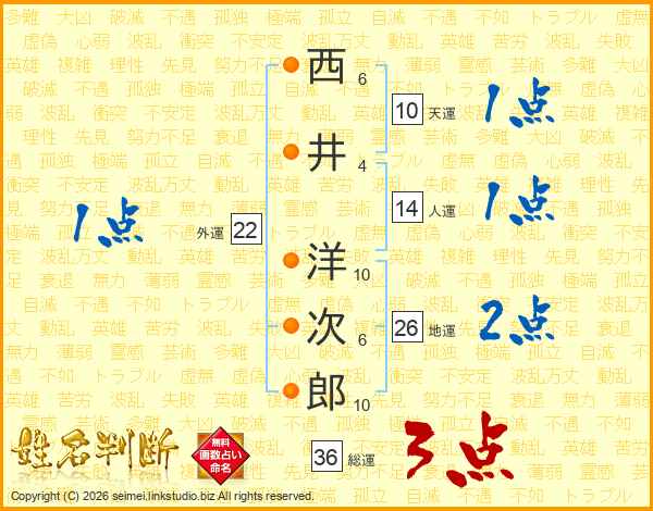 西井洋次郎さんの地運は26画の2点!