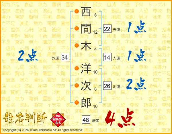 西間木洋次郎さんの総運は48画の4点!