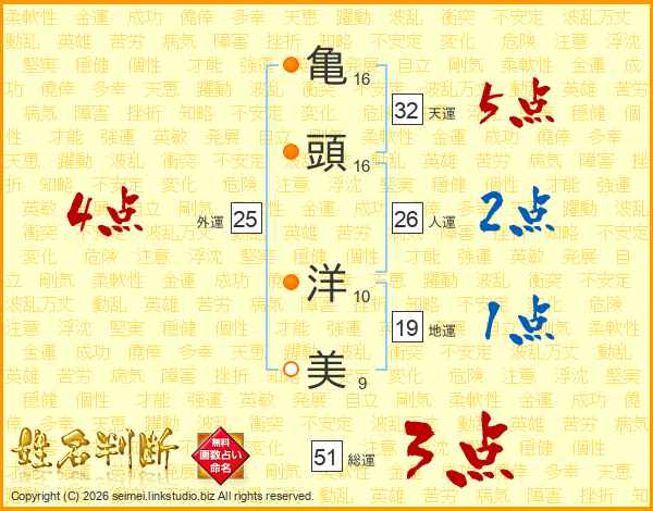 亀頭洋美さんの天運は32画の5点!