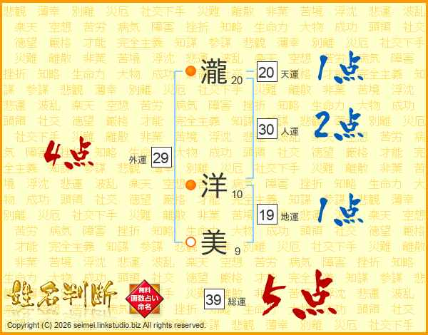 瀧洋美さんの総運は39画の5点!