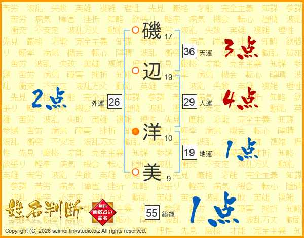 磯辺洋美さんの人運は29画の4点!