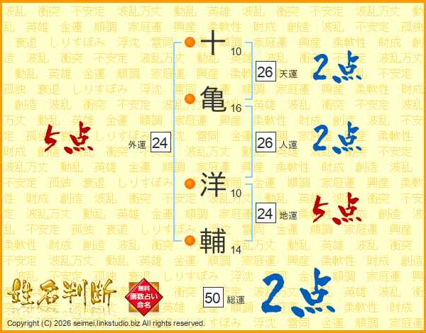 十(10画)亀(16画) 洋(10画)輔(14画)