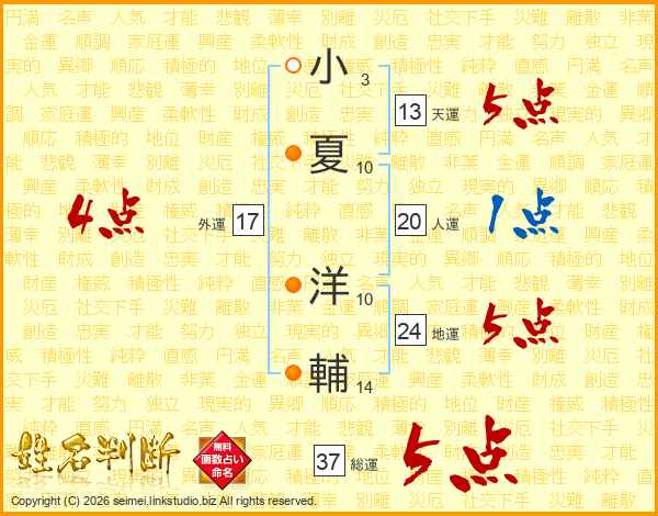 小夏洋輔さんの総運は37画の5点!