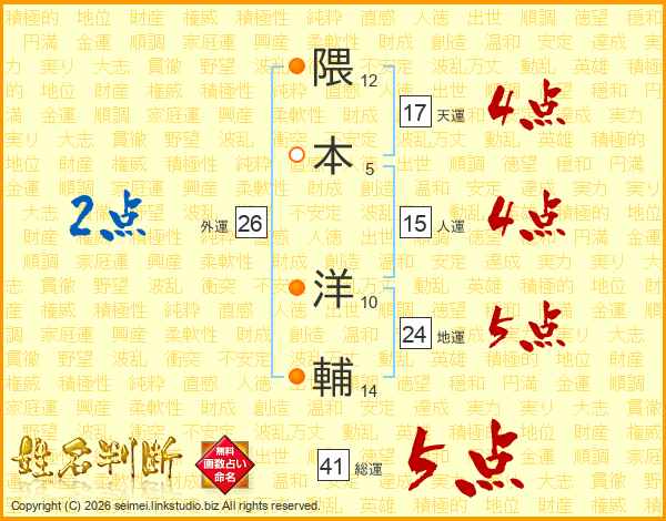 隈本洋輔さんの天運は17画の4点!