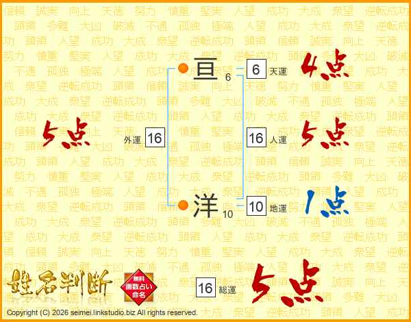 亘洋さんの総運は16画の5点!