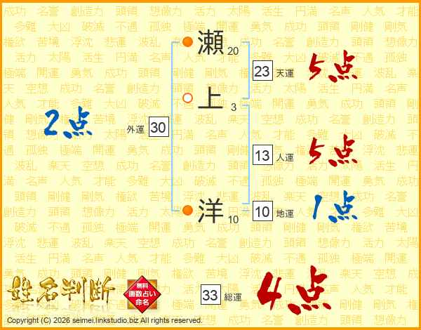 瀬上洋さんの総運は33画の4点!