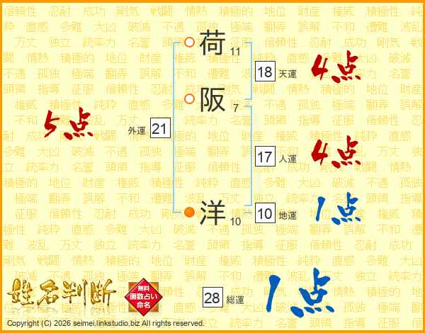 荷阪洋さんの総運は28画の1点!
