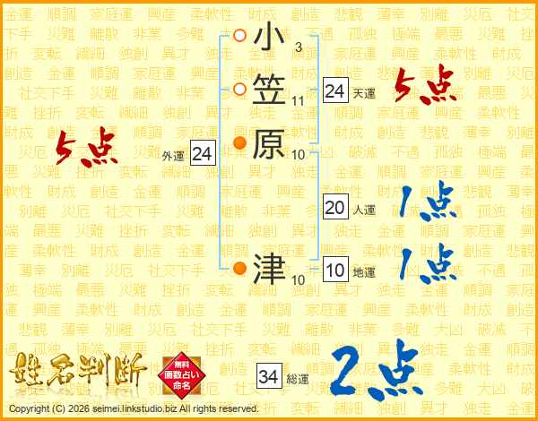 小笠原津さんの外運は24画の5点!