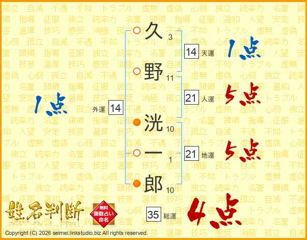 久野洸一郎さんの人運は21画の5点!
