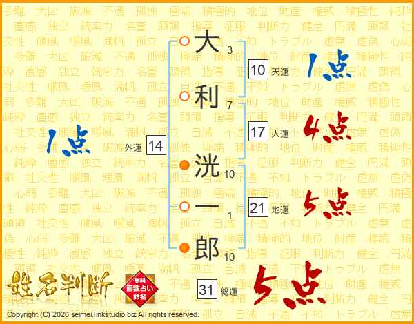 大利洸一郎さんの総運は31画の5点!