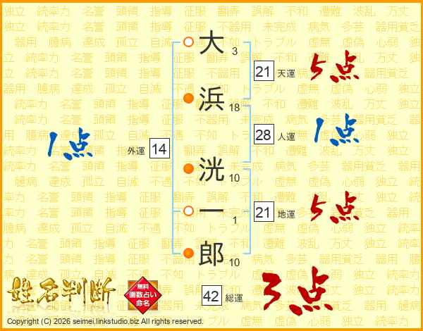 大浜洸一郎さんの天運は21画の5点!