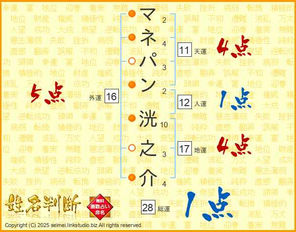マ(2画)ネ(4画)パ(3画)ン(2画) 洸(10画)之(3画)介(4画)