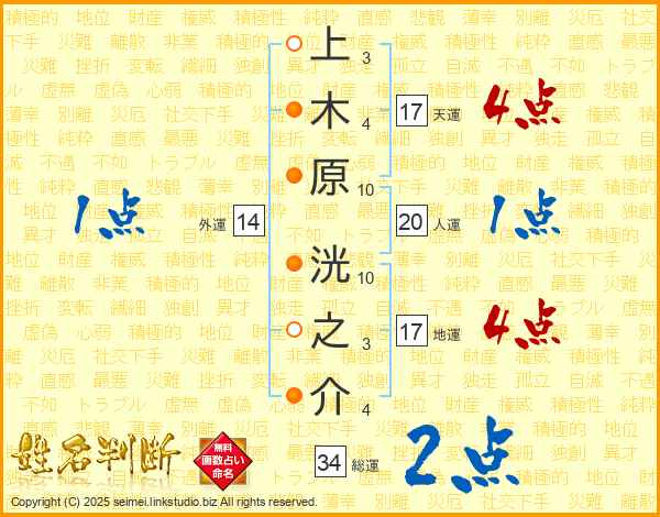 上(3画)木(4画)原(10画) 洸(10画)之(3画)介(4画)