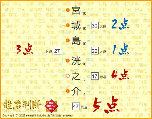 宮城島洸之介さんの総運は47画の5点!